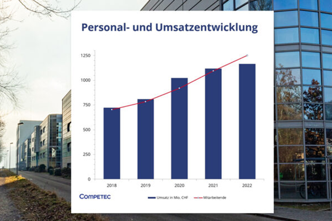 Inflation, Krieg, erschütterte Lieferketten: Competec gelingt es 2022, um über vier Prozent zu wachsen. Am meisten wächst die Firmengruppe im Geschäftskundensegment, nicht zuletzt auch durch den Zukauf des Geschäftsbedarf-Anbieters Schoch Vögtli aus dem Raum Winterthur. Auch beim Personalbestand und Versandvolumen wächst Competec. Das Unternehmen baut seine Berufsbildung und seine Dienstleistungen weiter aus und investiert weiter in die Logistik: Die geplante Aufstockung soll ab 2024 zusätzliche Kapazität zur Lagerung von Kleinteilen bieten.