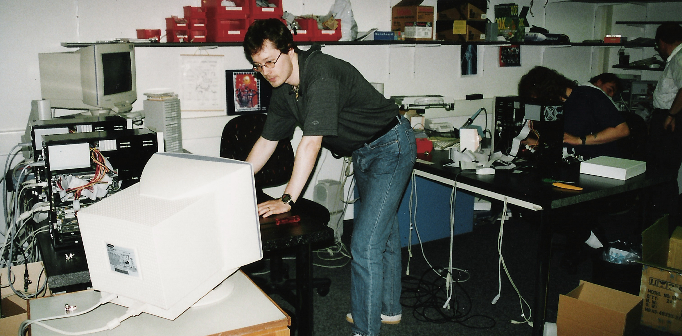 1996: Roland Brack stellte seinen ersten Mitarbeiter ein und zog mit dem jungen Start-up in den Gewerbepark Mägenwil. Dort assemblierte das Team in wenigen Räumen dutzende PCs.